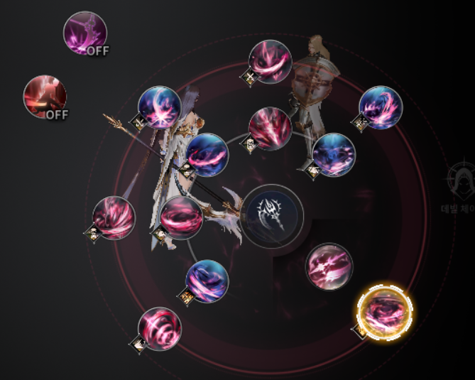 물론 모든 직업이 쌍수를 들고 싸우기 때문에 두가지 스킬이라고 볼 수 있으나 매지션의 광역기와 건슬링어의 예열과 비슷한 스킬구조로 되어 있는 형태라고 생각하면 쉽다.